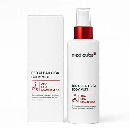 بادی میست Red Clear Cica Body Mist از برند Medicube یک اسپری سبک و تسکیندهنده برای پوست بدن است که با عصاره Centella Asiatica (Cica) و ترکیبات آبرسان طراحی شده تا پوست را در هر لحظه، حتی بیرون از خانه، مرطوب، آرام و تازه نگه دارد.